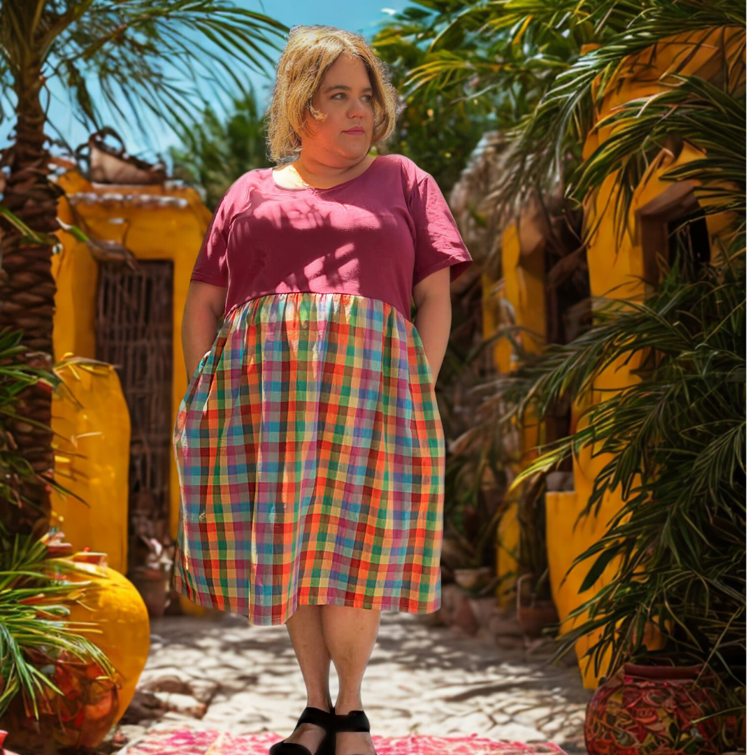 Built from the most loved Short Sleeve Stretch Frock pattern (yes, the comfy one everyone is obsessed with), this style keeps the soft stretch bodice you love and adds a 100% cotton skirt for extra movement and that classic smock feel. It’s the same fit you already know from the stretch frocks, with 5cm extra bodice length for a little more coverage and ease. The comfort is unmatched and the fit is generous. If you’re between sizes, size down. Trust me.