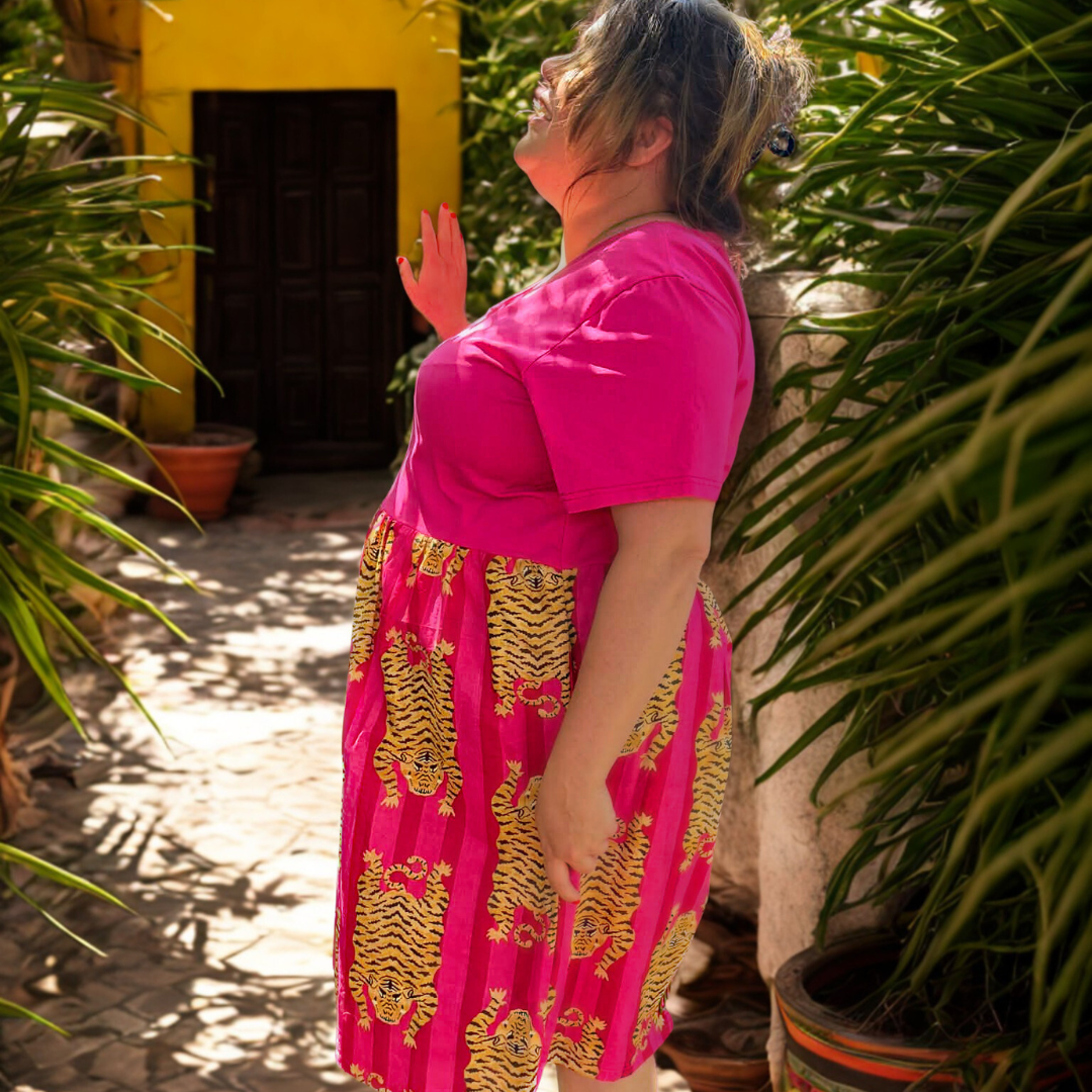 - The bodice is made from pink cotton/Lycra and the skirt section is made from 100% cotton